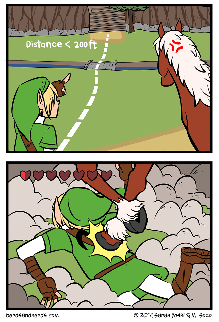 Despite the fact that I'm in the process of moving, I am committed to getting these strips out! But I am pretty happy about this comic, especially that last panel. Just watching Epona pummel Link gives me a strange feeling of satisfaction...