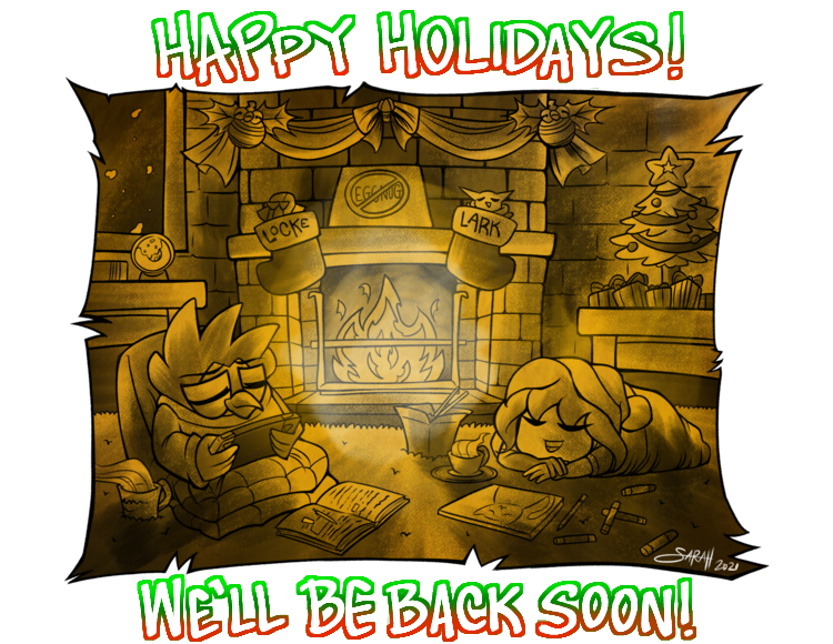 Happy Holidays! Happy Holidays everybody! We’re on holiday, but we’ll be back after that. Artist's Note: Writer's Note: Posted on December 27, 2021 by Sarah Yoshi and filed under WTF, Jank and tagged Happy Holidays! No Comic!.